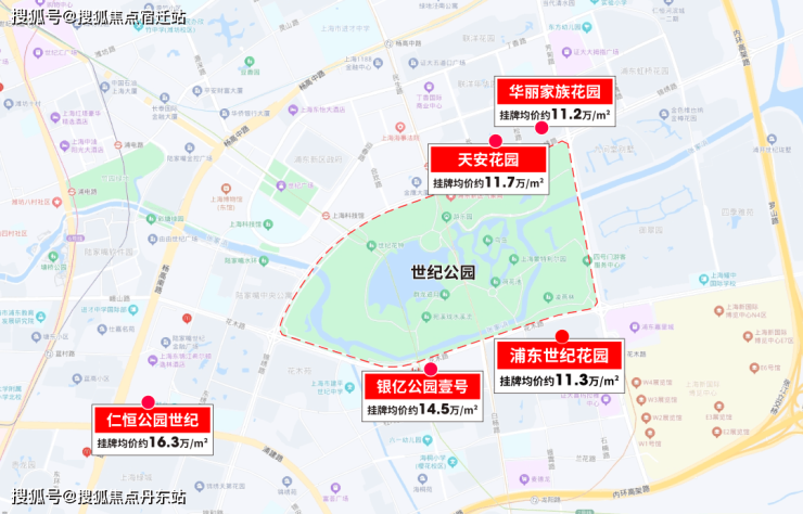 就拿世纪公园来说,以这座公园为中心,周边的房龄在20年以上的二手房挂牌均价起码都在约11万+/㎡。