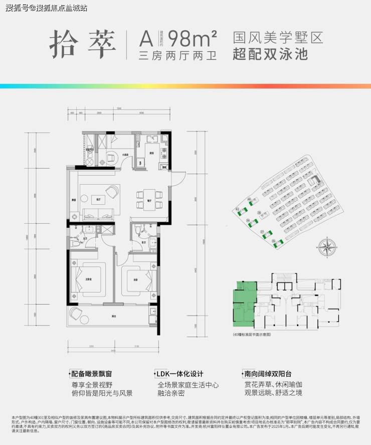 98方边套大三房、双阳台户型,产品稀缺,杭州罕见!