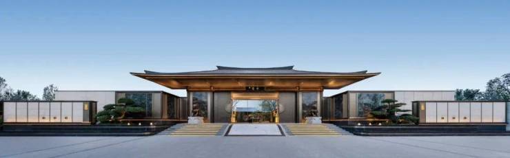 设置全域风雨连廊,园林景观独具匠心,将西湖十景融入园区,53米宽、10.85米高的中式大门搭配罗汉松与黄铜狮,尽显归家礼仪;中庭复刻“柳浪闻莺”“花港观鱼”,如西湖画卷;下沉庭院有百年古树,步移景异如“人在画中游”。