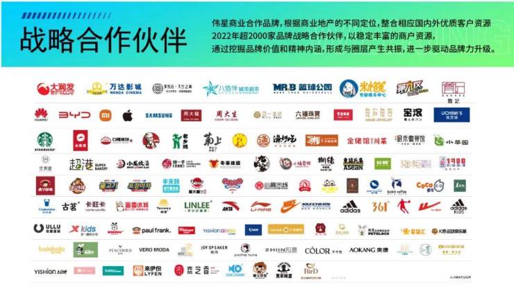 伟星商业,拥有强大招商团队,与世界500强优质企业成为战略合作伙伴,积累了丰富的品牌资源库,与2000+品牌战略携手,共赢财富未来。