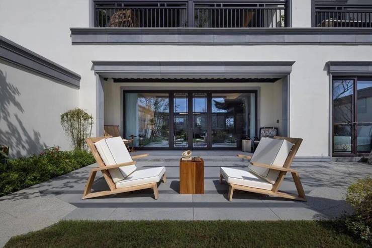 客厅与花园相连,内外相通的设计,让生活空间不再局限于屋檐之下,而是向花园空间延伸,与自然融合。一方花园中,纳藏生活万千诗意,抬眼可见日月星辰,垂眼即见诗意满园。
