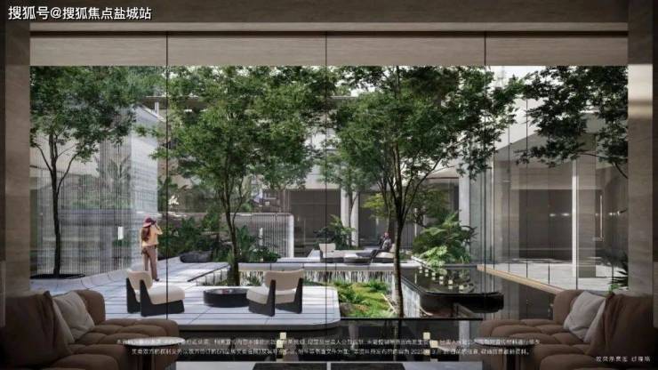 社区景观方面,项目运用室内手法室外化设计构想,将垂直景墙、悬浮观景台与叠水景观立体穿插,形成情随境转的沉浸式体验,自然元素渗透进室内,并与室内空间动态互动。