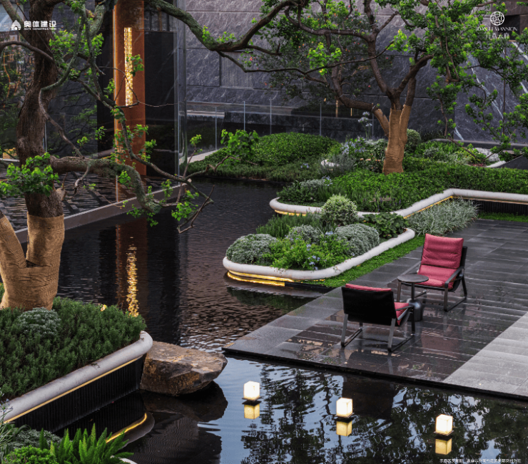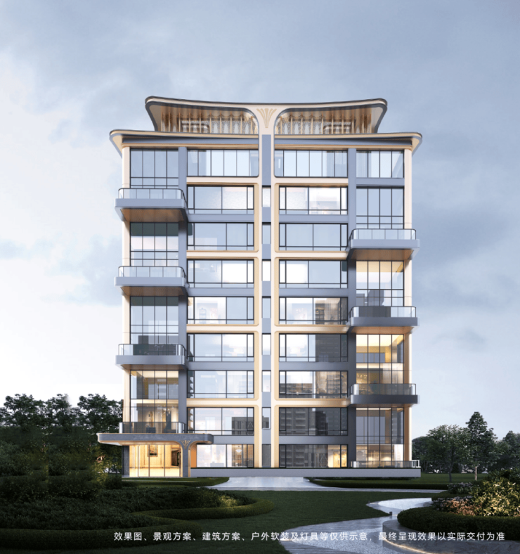 丹荔云府由QIDI栖地设计集团进行景观设计,打造一轴一院、六重归家礼序, 并承袭“植物园”系景观特色,以丰沛的四季植物,构建更亲近自然的都会度假园林。