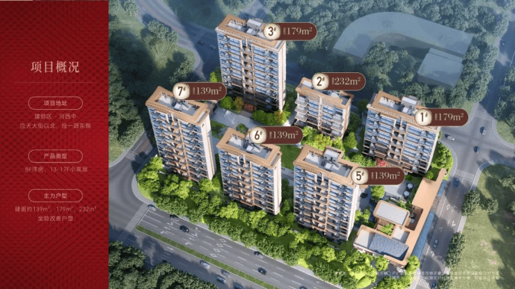 项目主力建面约139-179㎡,另有少量建面约232㎡洋房。一户一露台设计,奇偶错层排布,打造空中墅感花园,同时配备八恒科技系统配置。