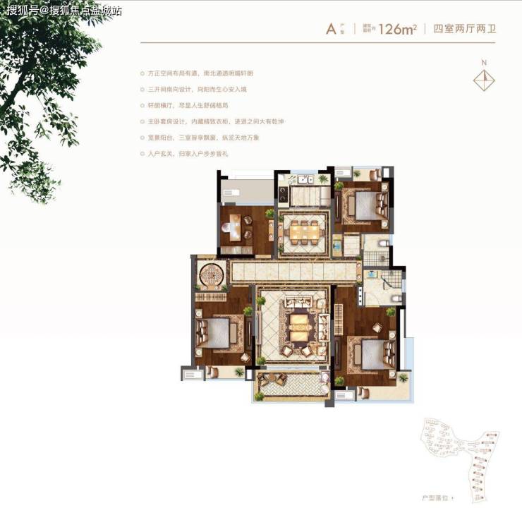 A户型: 建面约126㎡ 四室两厅两