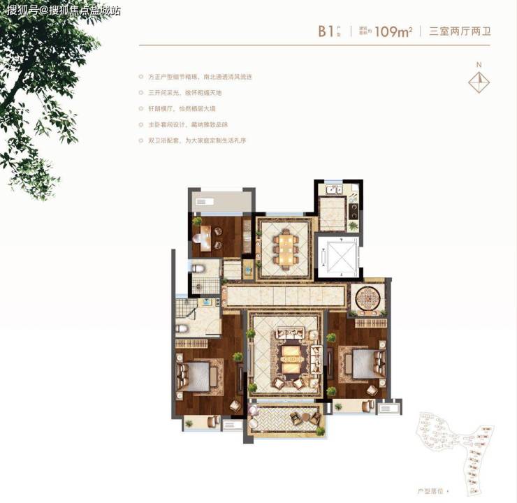 B1户型:建面约109㎡ 三室两厅两卫