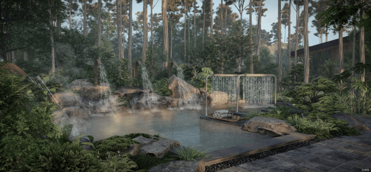 以“半亩方泉,森林气韵”为主题,围绕中医元气与九种体质开展泡浴养生,形成“精致私密有品质,森林艺术寻康养”的高端森林温泉度假空间。