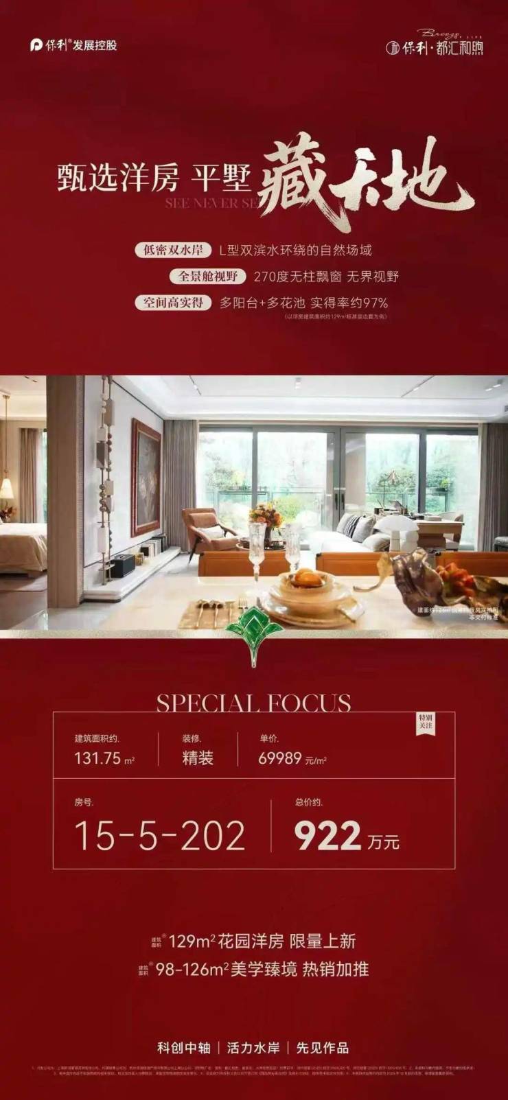 项目独拥双水系环绕的低密度住区格局,西、南侧天然河道勾勒出静谧居住边界,260余米滨水漫步道让居者推窗即见河景,社区中央景观轴串联阳光草坪、四季花径,打造都市里的诗意栖居。作为央企保利的匠心之作,项目搭载保利国家一级资质物业,24小时管家式专属服务保驾护航;酒店式归家入户大门,让居者归家仪式感拉满,精装修标配中央空调、地暖、新风三大件,以高标准细节打磨品质生活,真正做到买得安心,住得舒心。