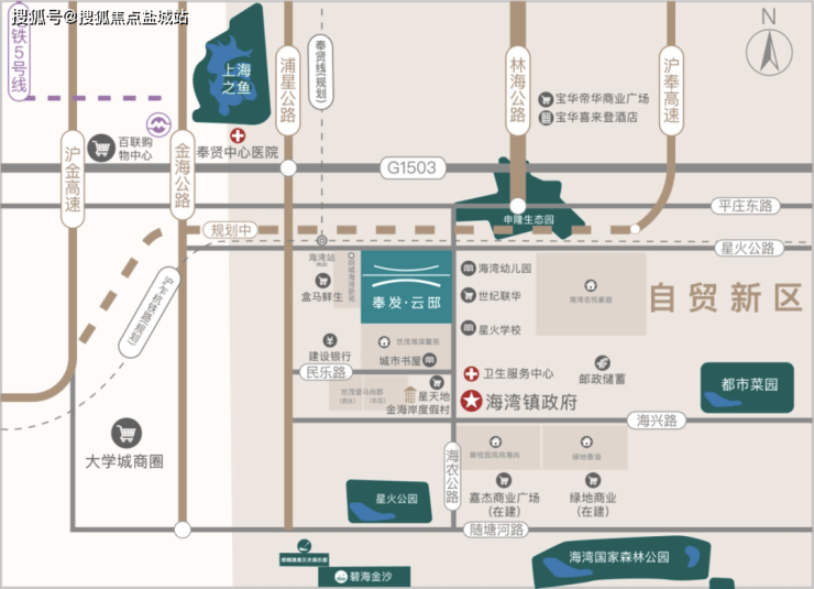 交通方面, 纵横立体路网 闲适与繁华随意切换 林海公路/浦星公路/沪金高速/沪奉高速(建设中)/金海公路多条纵线与绕城高速、申嘉湖高速双横向干道组成立体路网,辐射大浦东黄金生活圈。规划中的市域奉贤线直抵海湾大学城,项目门口即有公交站点布局,便捷路网,畅享上海主场生活。