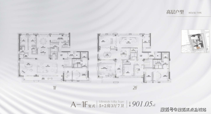 西边套是建面约370㎡左右的户型,中间套是建面约263-290㎡户型,东边套则是建面约490㎡左右的户型。3号楼还有两套顶复,建面约862-849㎡。