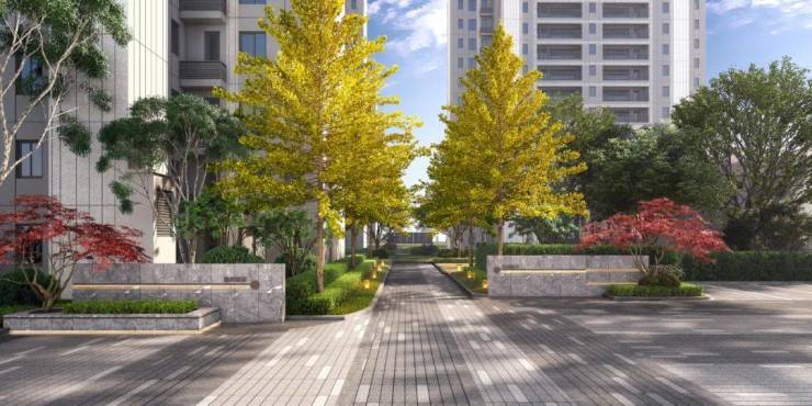 在景观设计中,社区设置有观赏花园、户外会客厅、社区入口等。