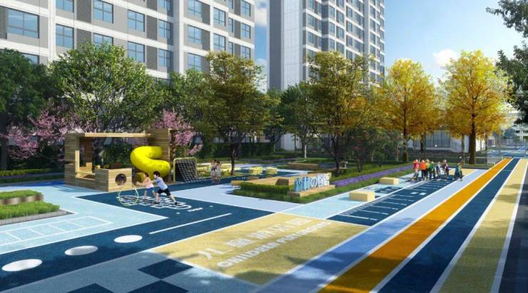社区为小朋友打造有适龄化成长的童趣天地,包括深林探秘的幼龄儿童活动区,活力趣玩的中龄儿童活动区,森林冒险的大龄儿童活动区。