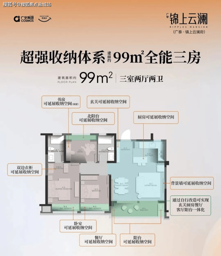 不止于园区配套,在生活空间上,广宇·锦上云澜致力于焕新人居美好品质,配备海尔中央空调、博世地暖、兰舍新风系统精装三大件,让更多都会菁英享受四季如春的似锦生活;老板油烟机、燃气灶、洗碗机,为生活增添美好烟火气。