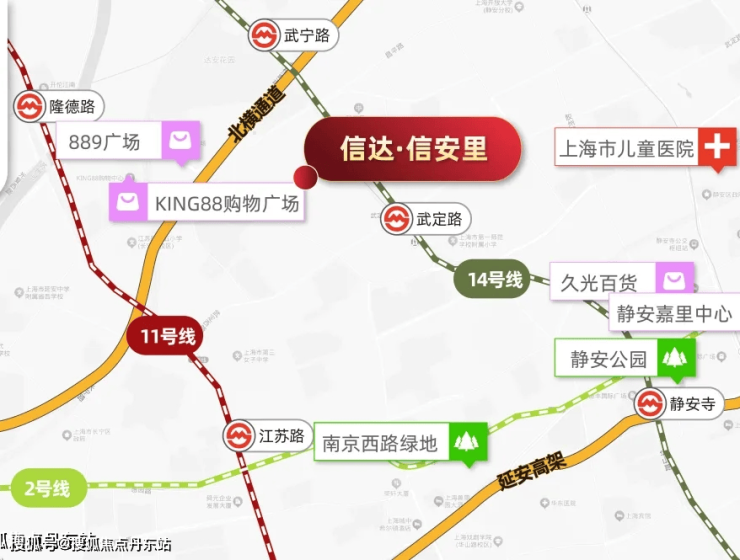 交通方面,项目500米内双轨交汇,坐拥13/14号线武宁路站和14号线武定路站,1千米范围有江苏路、静安寺、昌平路、隆德路等市中心地铁站,周边还有23路、45路、94路、136路、321路等十余条公交路线。多条地铁线路与公交路线交织成网,轻松连接城市的各个角落。