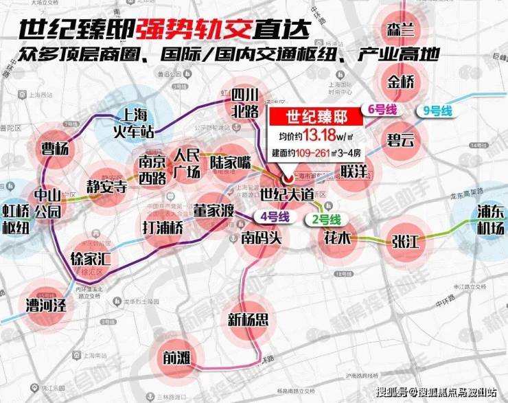 轨道交通方面:步行15分钟生活圈内,涵盖四轨交,距离2/4/6/9号线世纪大道站直线距离约400米,可直达市内众多CBD、双机场、双高铁站、国际金融贸易区、国家级产业高地等等……这样的公共交通通达度在整个上海几乎没有对手!