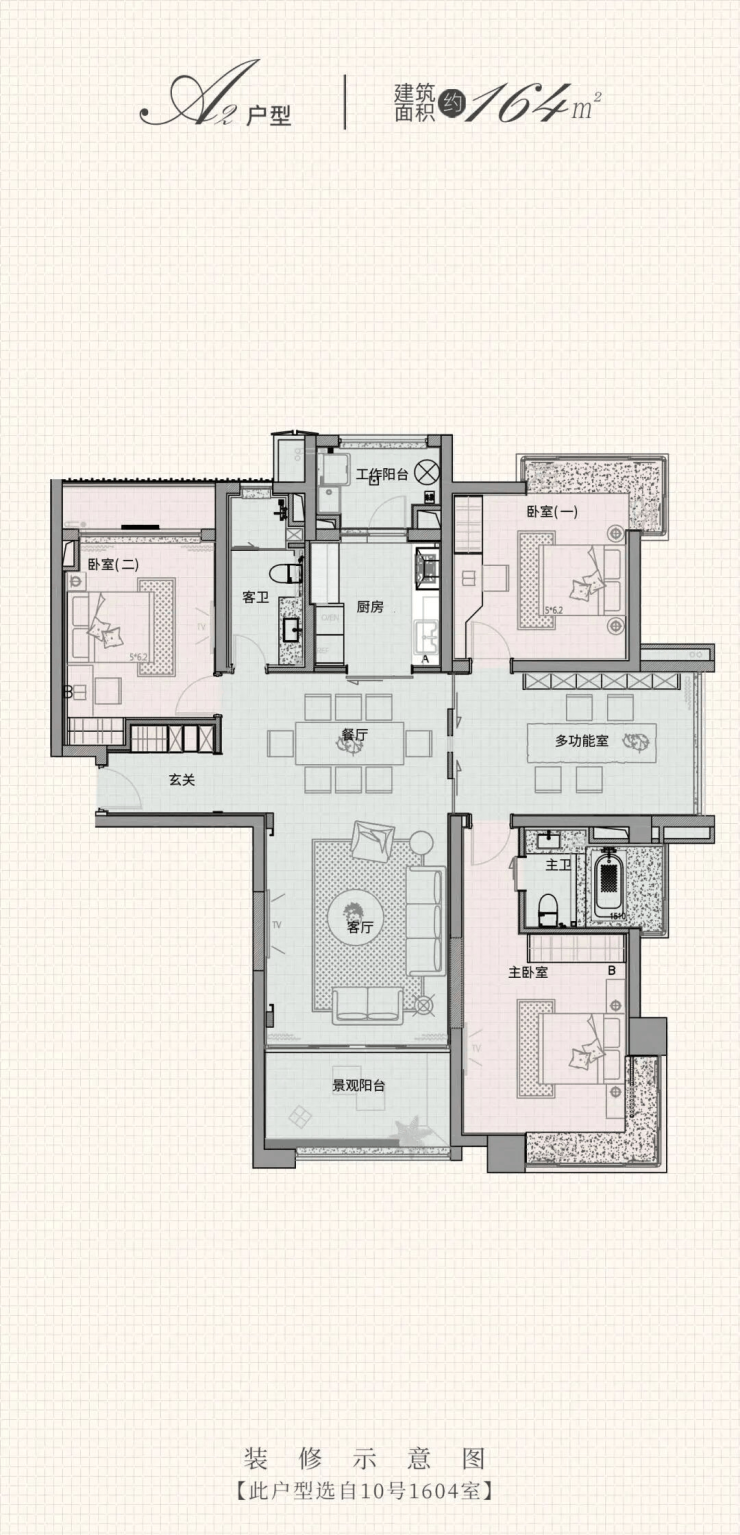 建面约164㎡灵动四房户型