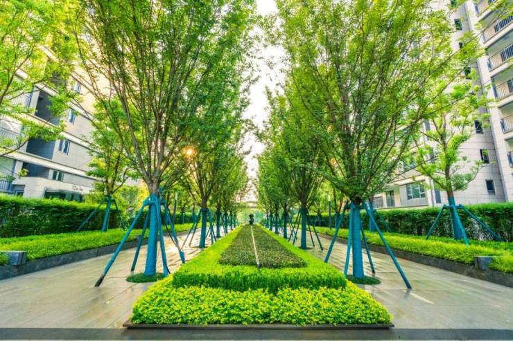 全冠移植、超过3米的树种数量很多,你很难想象这丰富的植被数量是一个刚刚交付的楼盘!
