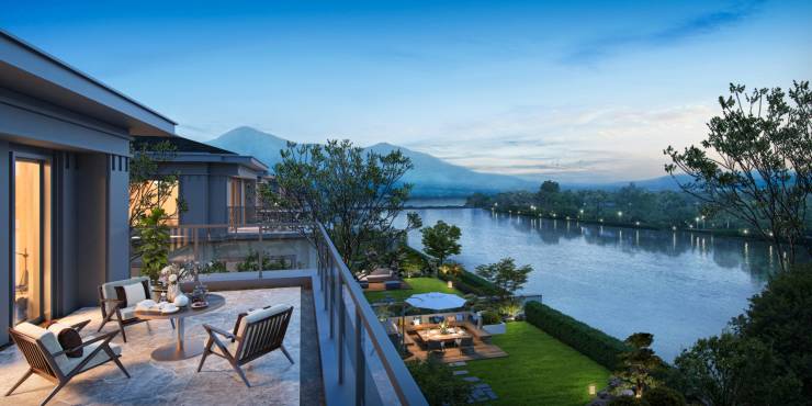 一园知江南,一境见东方。因循土地低密特性,师法东方造园理念,造化“一轴、两带、三心”藏纳万象;合璧内外,连通约320M沿河景观带,将中式园林美学与山水生活方式融合,重构当代名仕栖居场景。