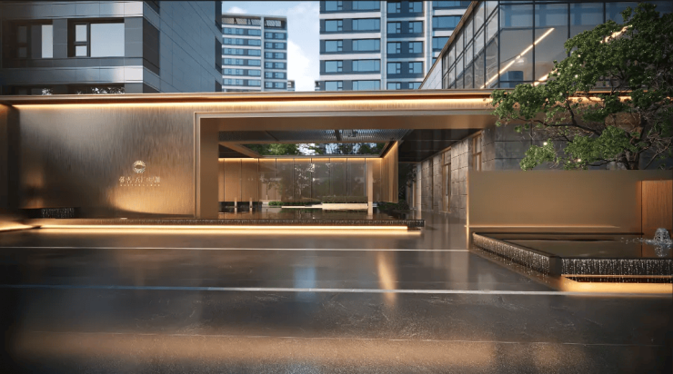 以社区入口为例,参照星级酒店标准,打造高约6米、宽约30米的奢阔门头,辨识度、仪式感、品质感兼具。