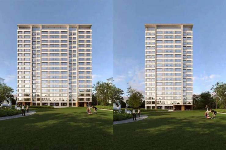 油画框式建筑立面,大面积金属漆一体板与铝板搭配臻贵石材,超高窗墙比,让视野、采光极大化,颜值和品质双双在线。