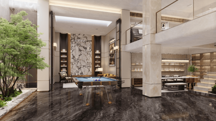国贸樾云墅打造近2000平的下沉式会所,室内恒温泳池、高尔夫练习室、社区壁球馆、知名NOHRD运动品牌器材的健身房、古奇黑与皇家白玉石材铺装的豪华私宴厅等。