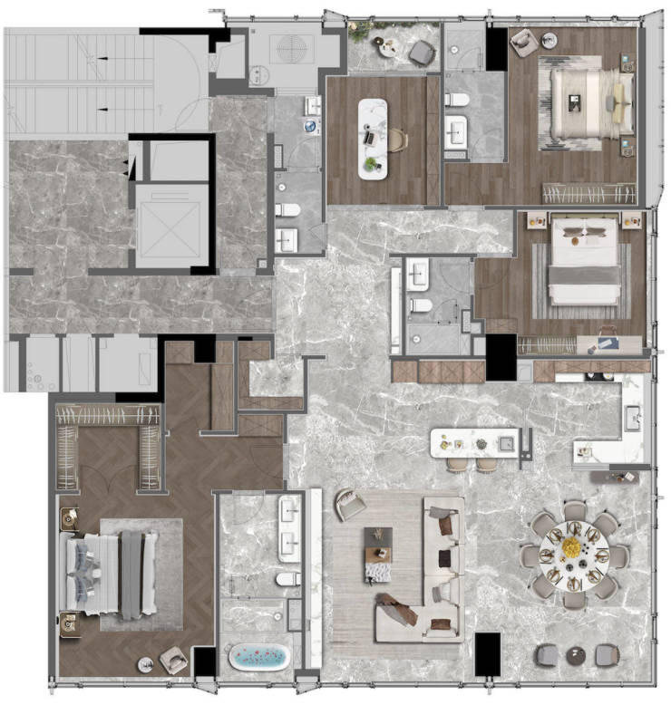 300㎡平层世界:近100㎡无界社交厅堂,全系高定精装,重新定义奢华。