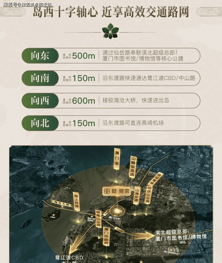 建发象屿观雲周边交通条件优越,地块周边拥有仙岳路、东渡路、长岸路、和宁路、和旭路等道路,可快速通达东部城区,以及海沧区、集美区。此外,根据《厦门市城市轨道交通线网规划(2021—2035年)》,规划地铁7号线在地块附近设有和宁路站,为居民出行提供了更多便利。