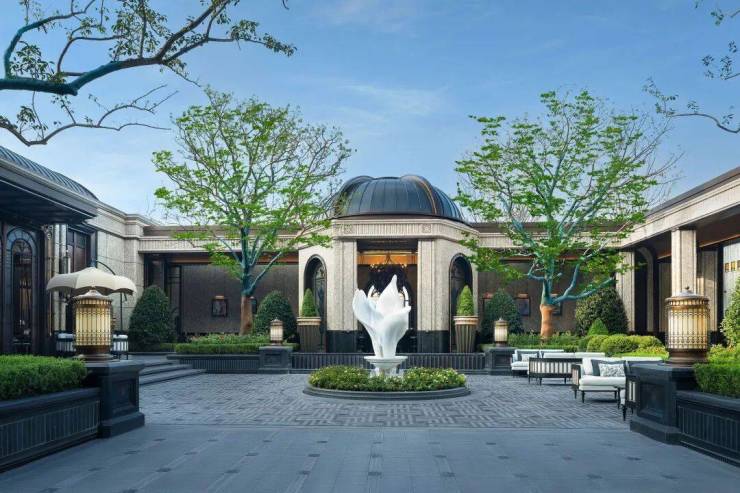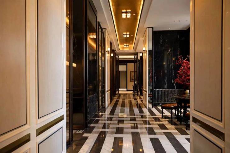 进入正门后是奢华酒店式落客区,头顶之上,看着风情穹顶,一眼穿越到和平饭店的八角玻璃穹顶之下,对标半岛酒店的落客区,让独家君有一瞬间,觉得自己从“阿宝”变成了“宝总”。