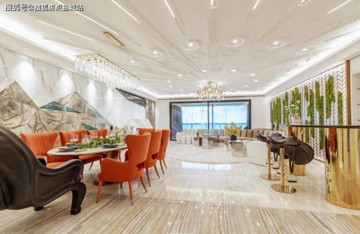 步入电梯大厅,6.8米的挑高大堂,玉石楼道铺装,业主进出的每一步,皆有着庄重的仪式感,尊崇归家气度,种种细节都彰显着生活高度。