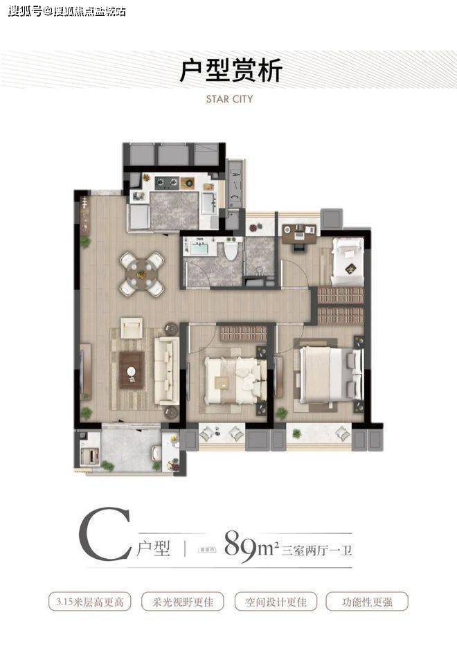· 约89㎡户型:虹桥灿耀星城售楼处电话:400-000-0460转6666【营销中心】大虹桥范围不到90㎡的户型大部分都只做到2房,灿耀星城该面积段实现3房功能性,让自住客户一步到位,也让该产品进入二手市场后具备降维打击的优势!