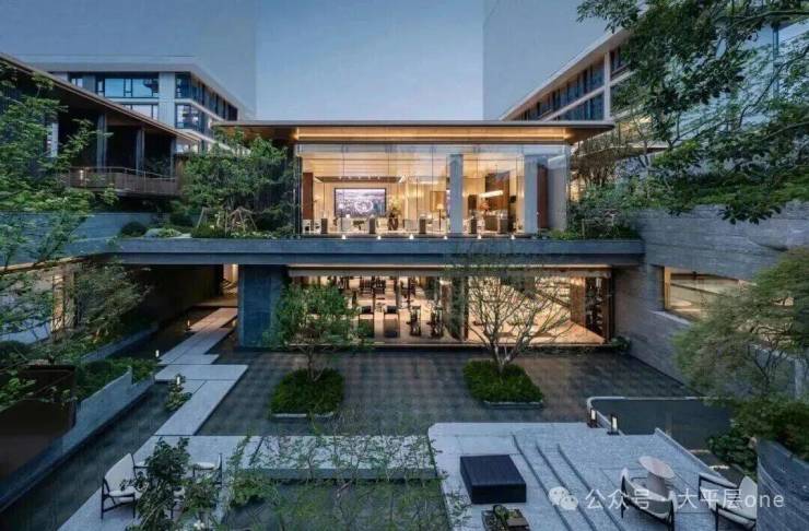 - 三、园林哲学:立体庭院+下沉式景观,打造垂直山水画卷 当其他项目还在平面铺陈园林时,丽香庭已突破二维限制,以立体庭院概念重构空间秩序。地块整体抬升3.7米,配合最大高差超7.5米的下沉庭院,形成地上一层,地下三层的垂直景观体系。穿过小区大门,五株香橼树在花坛中摇曳生姿,叠层水幕沿着蓝眼睛花岗岩台阶潺潺流淌,瞬间将都市喧嚣隔绝在外。沿着阶梯步道向上,层林叠院解构赖特流水别墅精髓,三阶跌水与台地花园形成动态视觉焦点,红枫、紫薇等名贵树种随季节变换色彩,让归家之路成为一场穿越四季的旅行。更令人惊叹的是,通过散点式布局消弭空间中心,让自然山水在垂直维度上自由延展——站在任何角度,都能看到不同层次的景观组合,真正实现移步换景的东方园林智慧。