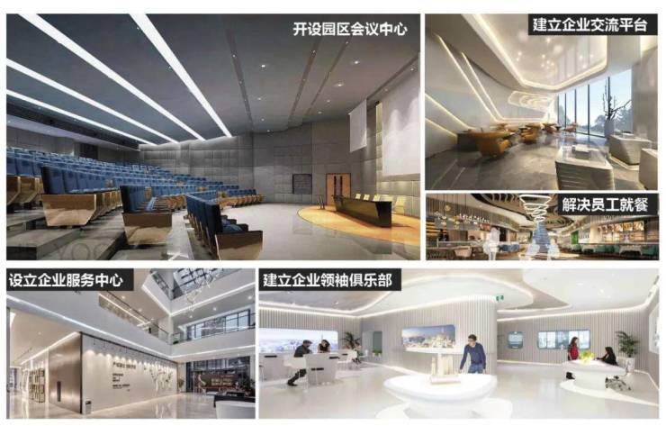 其中除基础配套外,还搭建了公共智慧服务平台、实验室平台、企业展示空间、金融投资机构、检测检验机构、大数据服务中心等。