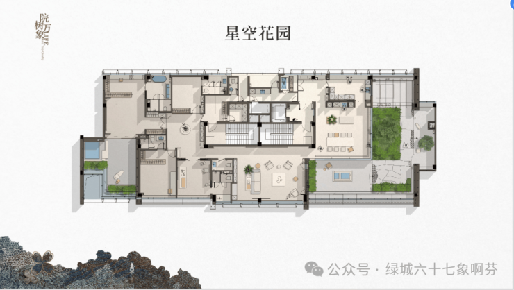 六十七象规划4栋建面约300-357㎡花园大平层、以全新空间尺度和稀缺户型,定制生活优雅的城市山水藏品。