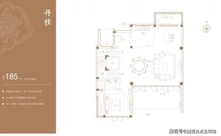 房屋实际可用面积要比户型图标注面积大一些,以“丹桂”户型为例,户型图标注的建筑面积为185m²,但是层高达到9.9m,未来完全可以搭建二层,搭建后,地上使用面积可以达到约280m²左右。