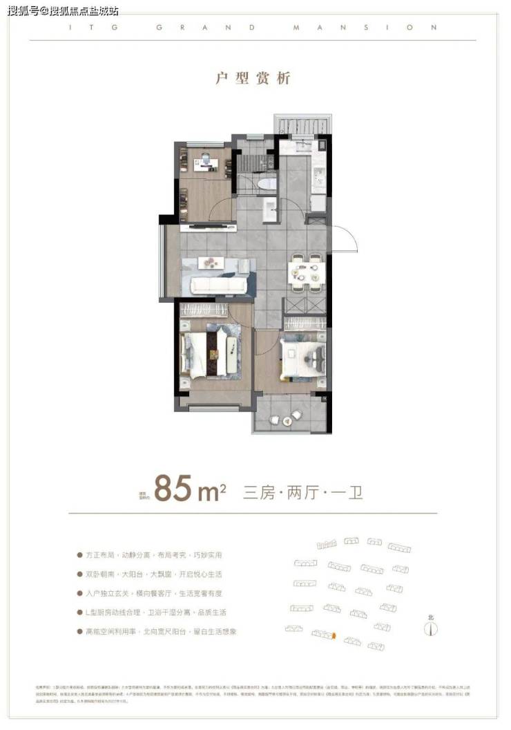 户型解析:约85㎡的3房,这种入门级的产品也要保证居住的尺度感。比如利用L形厨房与餐厅相连接,一体化的设计让空间充足利用。比如次卧连接阳台,就是人性化考虑到给他们一个私密的追光天地。