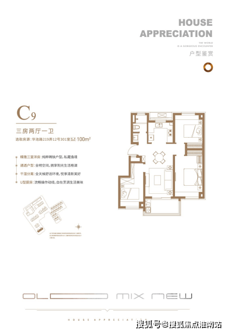 如C9洋房户型,做到了三开间朝南+全卧室带飘窗+客餐厨相连+卫生间干湿分离,室内采光、通风俱佳。