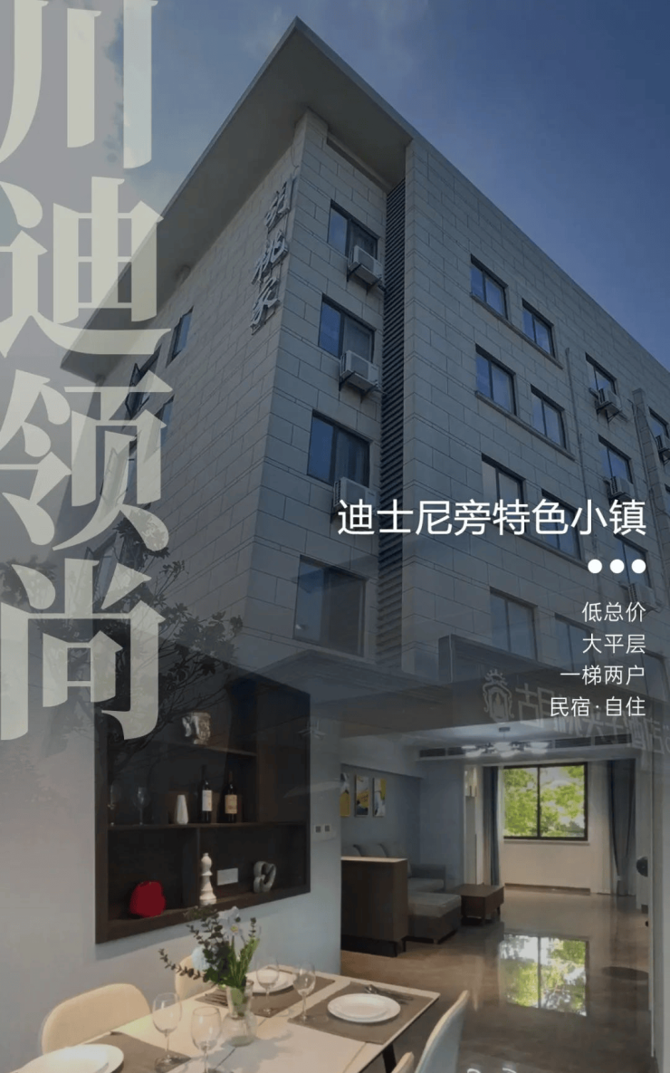 川迪领尚公寓坐落于浦东新区川图路上,属于迪士尼板块,直线距离迪士尼国际旅游度假区仅3000米左右,开车10分钟车程,公寓定位为高性价比大平层,整个小区由38栋总高4-5层的小楼组成,外圈6栋以餐饮、酒店及各种生活便利性商业为主,内圈32栋以民宿运营和自住为主。