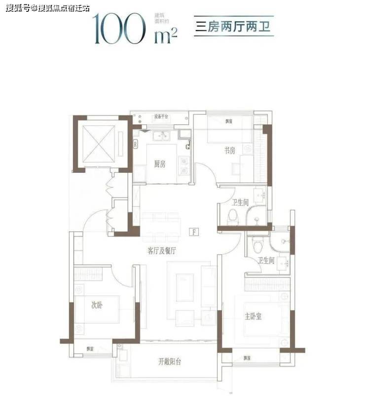 建面约100㎡ 3房2厅2卫▼