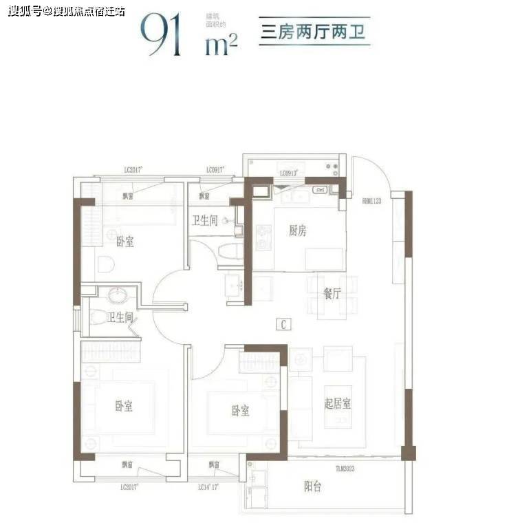 建面约99㎡ 3房2厅2卫▼