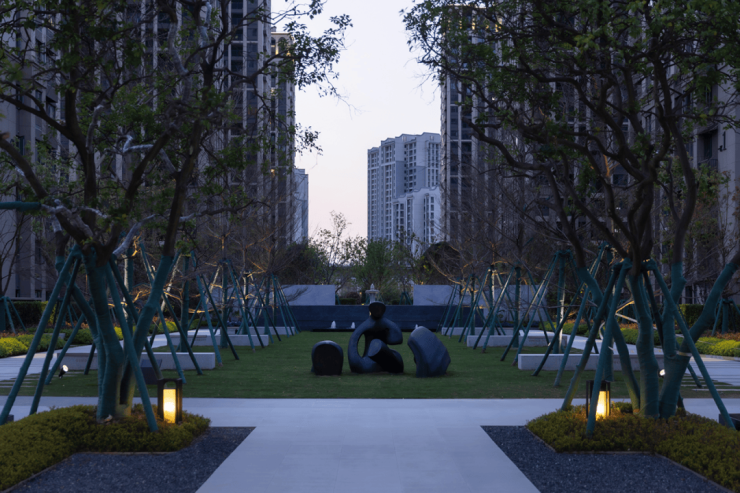 延续学院派的风格和精神内核,我们以“一轴一环”打造归家的学府时光和全龄生活场景,希望人们在与绿荫、草坪、流水、花园、阳光的互动中,回归轻松自在的幸福生活。暮色初合,光影温柔,从书香广场拾级而上,一步步浸润学府气质,列阵植物将仪式感进行到底,开阔对称的景观轴引领归家脚步,晚风微拂,心灵也在此刻回归宁静。