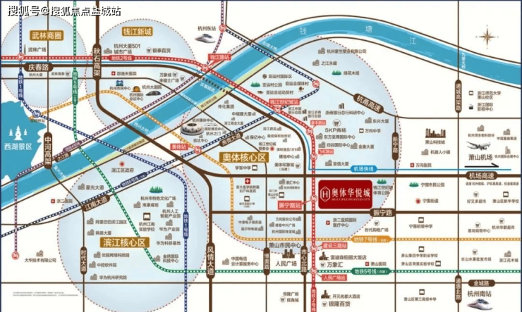 商业配套:奥体博览城——莲花碗、杭州城市之门、信达中心、SKP商场、万象城商场、来福士商场等大型综合