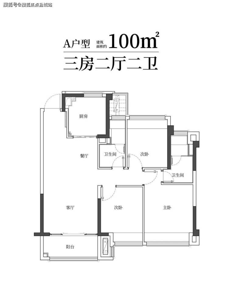 建筑面积约100㎡雅致三房两卫,满足二娃时代;