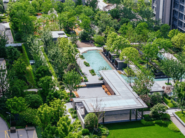 步入其中,绿茵如野,汀水叠映,江心印园“1/5建筑、4/5生活”的造景理念得以具象化呈现,约1.5万方的中央园林,珍稀树种全冠移植,主题小景错落有致,繁茂随处可见,与c位水景“曲岸林歌”交相呼应、动静皆宜,形成一派流动的诗意。冥想茶室坐落于水景中,激荡松弛自在的磁场,交织怦然心动的旋律。