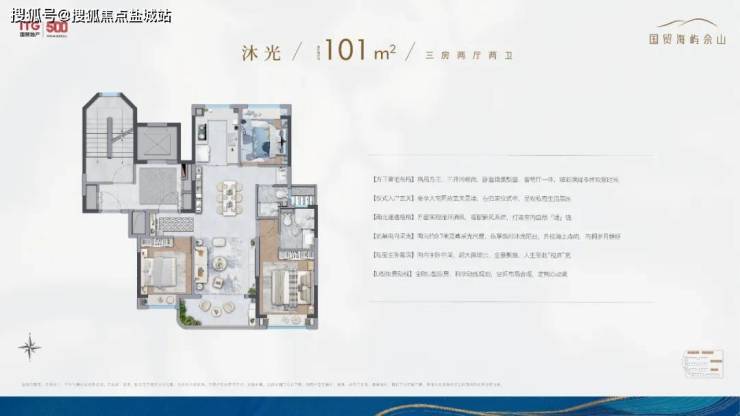 - **飞机户型**:无连廊设计+南北通透,三开间朝南、270°采光阳台,小面积实现改善级空间体验。