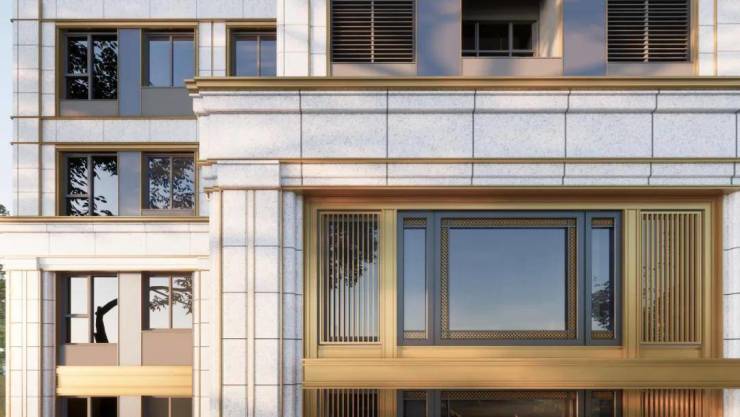 墙面主要以石材、真石漆、铝合金线条为主。这让人眼前一亮的精致外立面,会成为业主未来身份的象征。