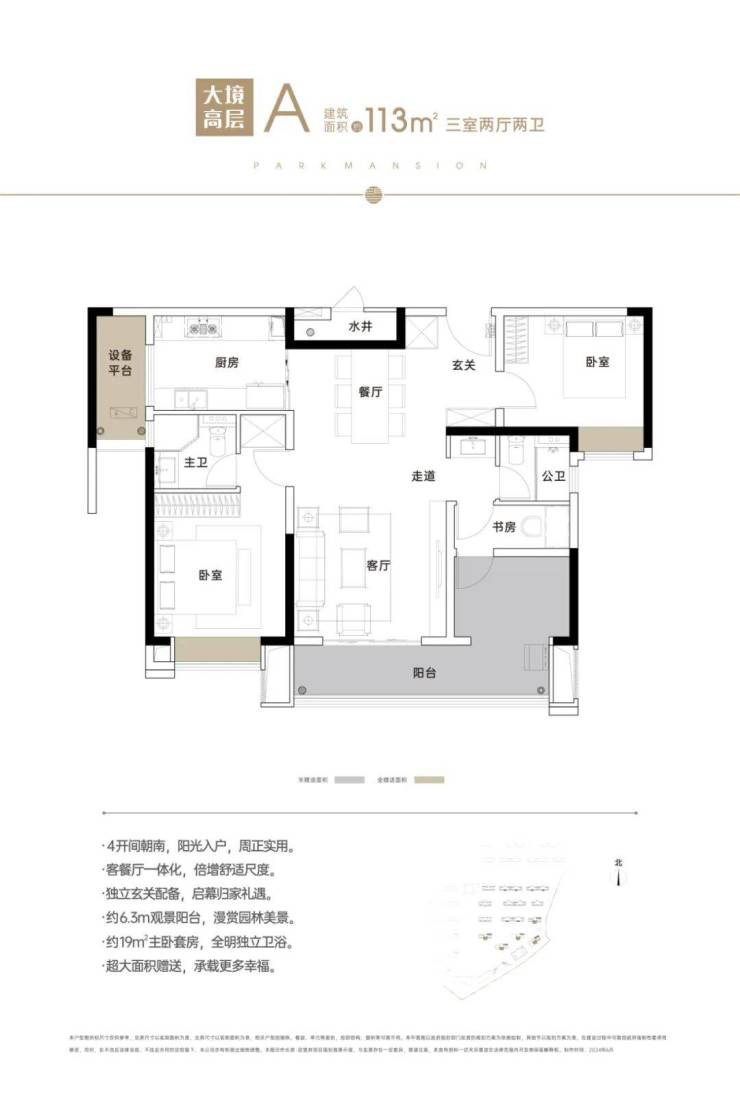 高层住宅仅25层,2梯3户类板楼设计,得房率高达约93%。