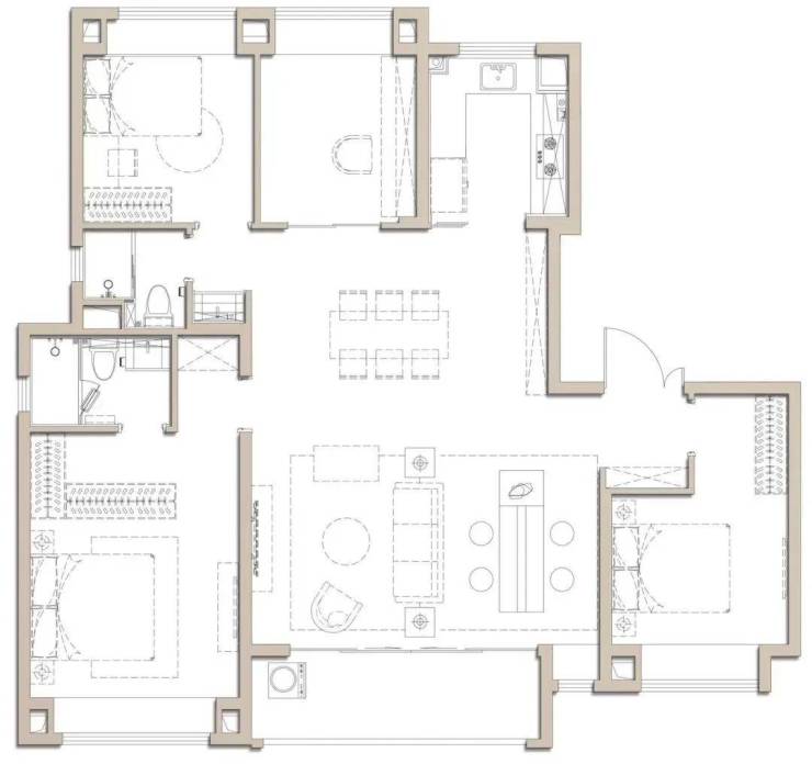 大户型在上海将越来越稀缺,市面上非常饥渴,尤其是在徐泾,145㎡4房真的太少了。四房户型整体的舒适度和阔绰感显露无疑,两梯两户设计,动线更独立,私密性也更强。