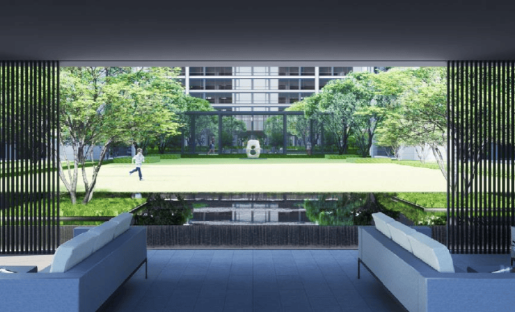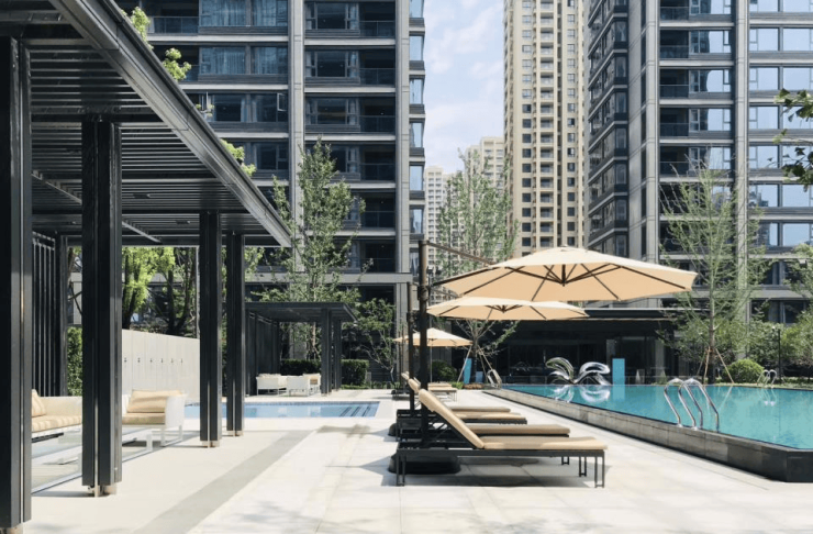 一轴指的是入口处的礼仪轴线空间,一廊就是小区中心的风雨连廊(漂浮会客厅:临水而坐,水景协奏曲开阔空间,沐浴自然光线。),一环就是500M长的邻里间健身环步道,四个宅院庭院空间:
