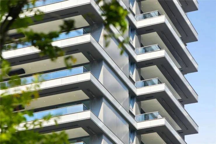 第一层刻度,工艺、用材经得起时间考验。建筑外立面以铝板、干挂石材、大面积玻璃为主要材质,主色调是豪宅标志性的高级灰,阳光下折射出层次丰富的光影效果。10年后,这种经典感依然不会褪色。