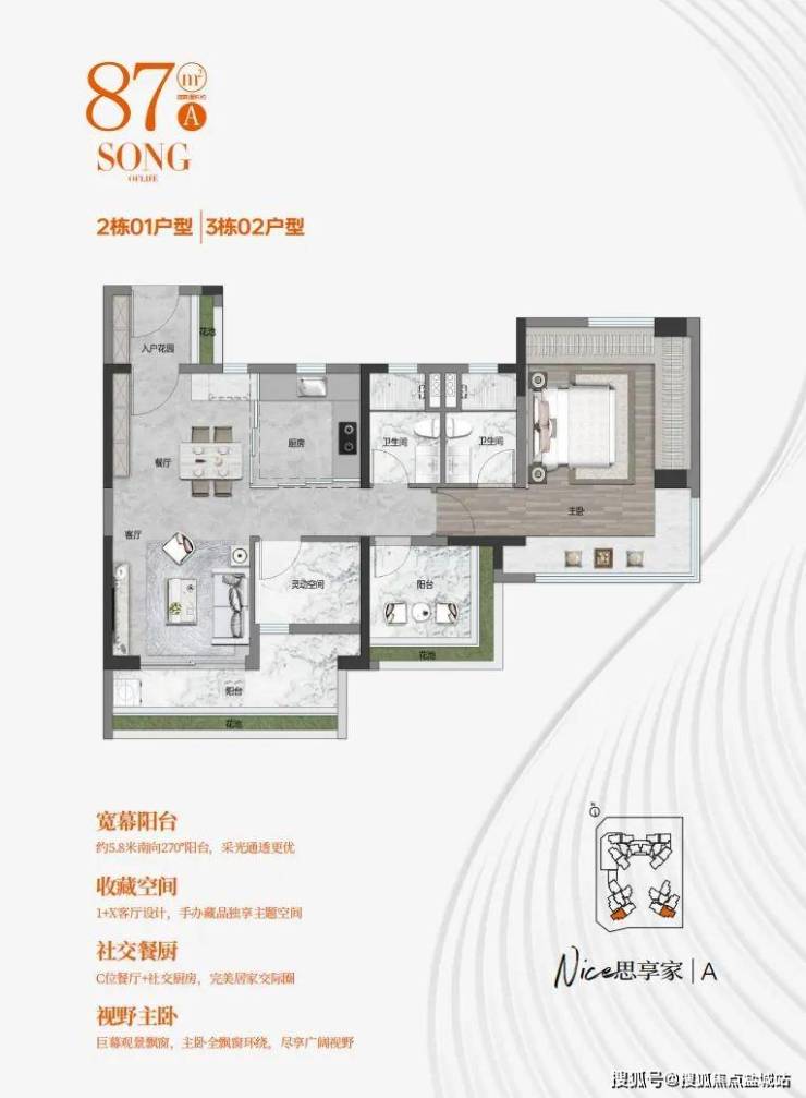 总价低、朝向好、户型靓,是它的卖点,首推建面71-87平三房,现在加推70-100方的三-四房